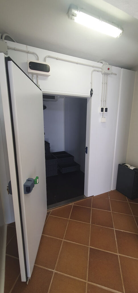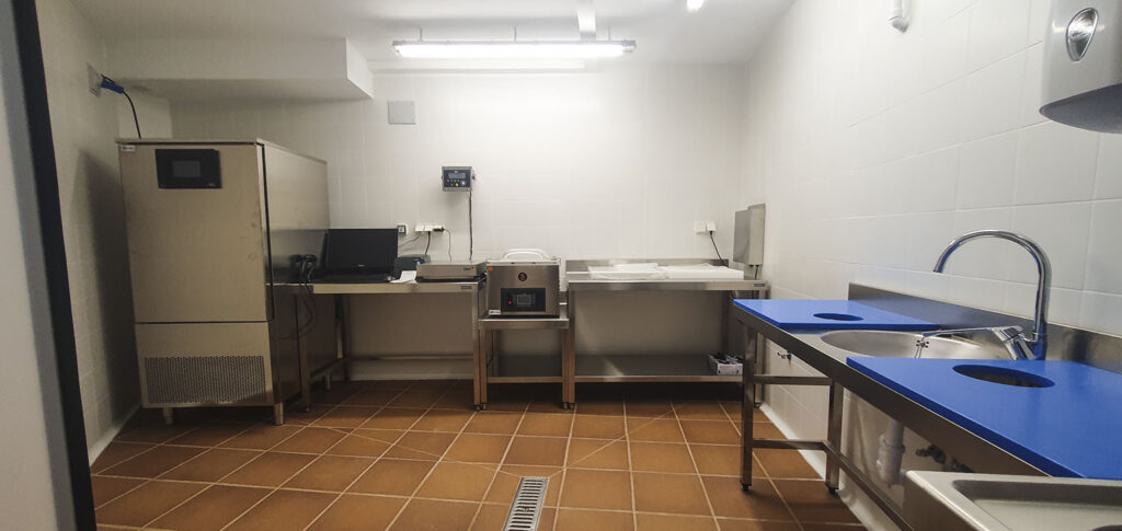 Nueva zona de envasado que la Cofraria de Pescadors de Ciutadella ha habilitado para sus socios. Ideada para procesar el excedente de capturas mediante un sistema ágil, rápido e higiénico, su concepción fue estudiada por nuestro equipo técnico y, tras diversas propuestas y con la aprobación de la Conselleria de Salut i Consum, consensuamos esta nueva sala Dotada con zonas de lavado, corte, envasado, abatimiento del producto y almacenaje en cámara de congelados.